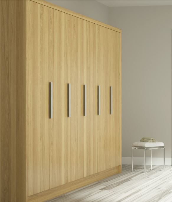El armario modelo ALPES es un armario fabricado en rechapado de madera (pino, roble, castaño, nogal, sapelly, etc..), barnizado con color o al natural para adaptarlo al ambiente que el cliente desea. Está compuesto por puertas abatibles con tiradores y puede ser configurado con la distribución que el cliente necesite, cajoneras, perchas, baldas y diferentes accesorios.