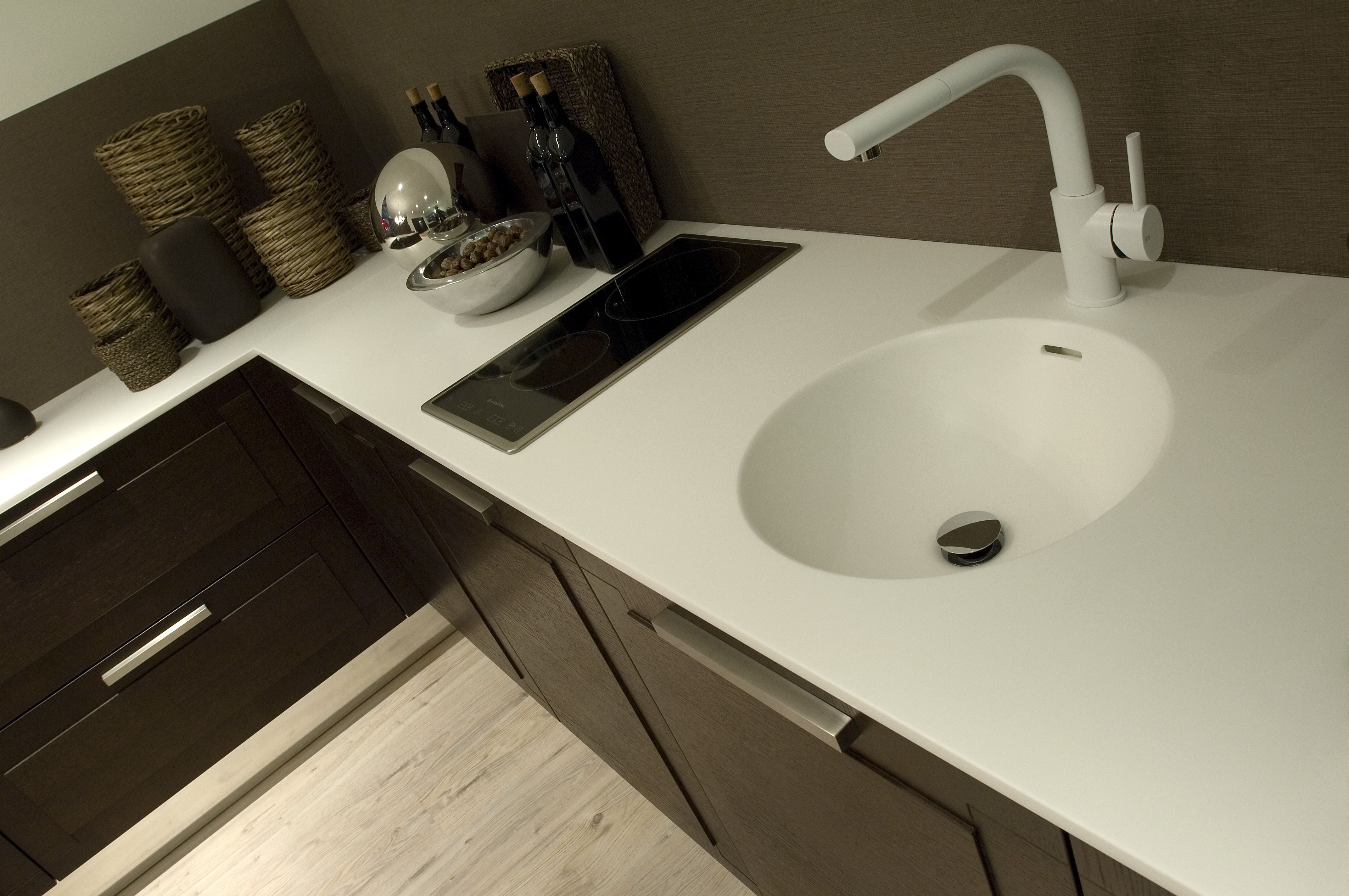 De muy fácil limpieza además al ser una superficie sin juntas no hay rincones donde se acumule la suciedad. Los copetes se pueden integrar sin juntas.